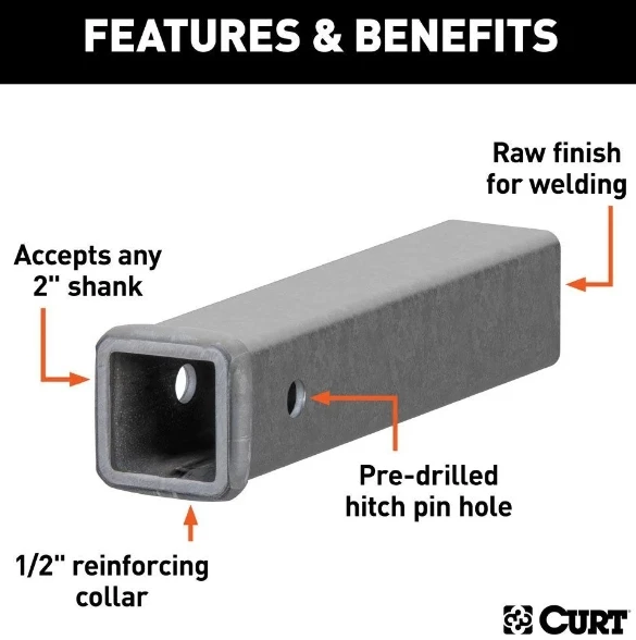 CURT fabrication steel receiver tubing can be used to extend the reach of your receiver or to create a piece of custom towing equipment. Each unit is equipped with a 1/2″ reinforcing collar for extra strength and has a raw finish to be ready for welding. This receiver tube has a 2″ x 2″ opening and measures 12″ in length.