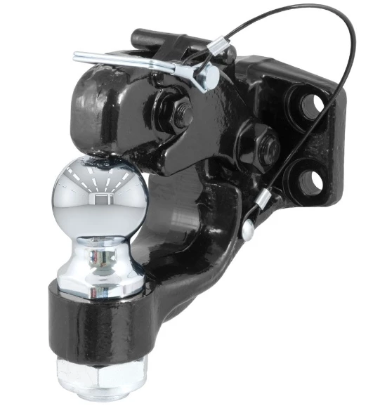 In agriculture, construction and even military applications, pintle hitches are the trusted product of specialized towing. They are notorious for their high weight capacity and simple design. The basic pintle hitch is essentially a hook and loop, with the hook attached to the vehicle and the loop mounted on the trailer. Because of their simple design, pintle hitches are able to have thicker metal construction and more secure coupling. CURT combination ball and pintle hitches combine both a pintle hook and a standard trailer ball to give you a more complete towing option on your heavy-duty truck or SUV. Combination ball and pintle mounts are available with a shank to mount on a receiver or in the adjustable style to mount on a channel or plate.
