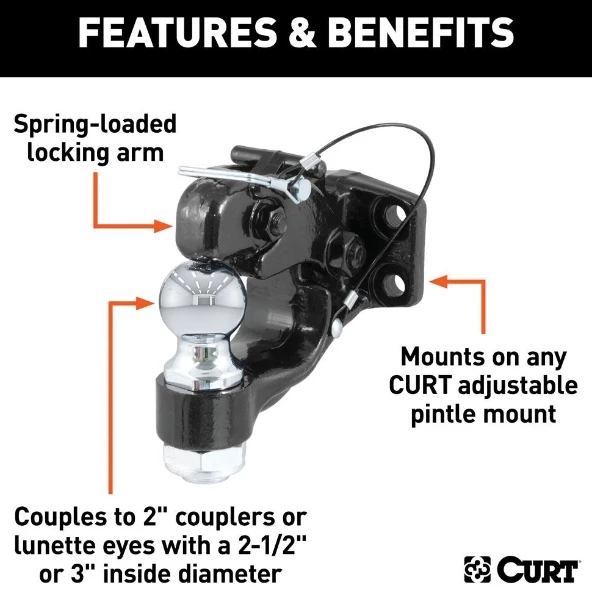 - Mounts on any CURT adjustable pintle mount