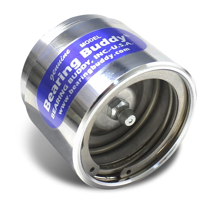 Bearing Buddy with Bra. Towing causes trailer wheel hubs to heat up submersion during launching quickly cools them, forming a vacuum which sucks in water and can cause damage. The Bearing Buddy provides permanent wheel bearing protection and lubrication for all types of trailers. Water and dirt are kept out of the hub. Lubricant level can be quickly and easily checked by pressing on piston. Quality construction features stainless steel internal parts, and a triple chrome-plated barrel. Won’t crack or pop out. You can totally submerge wheels and float a boat on or off the trailer. (Pair). Model 1938, fits outer bearing cone number 09067 1.938 inch diameter outer bearing cup (race) number 09194, 95, 96.