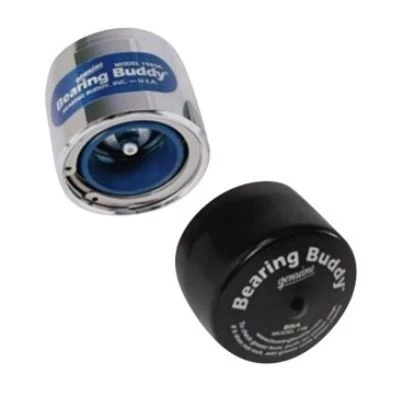 Universal BRA Bearing Protectors (43101) by Bearing Buddy®. Finish: Chrome. 1 Pair. With Vinyl Covers. Trailering, even a short distance, heats the hubs. When the wheels are submerged during launching, the hubs suddenly cool and the air inside the unprotected hubs contracts, forming a vacuum which draws in water through the rear seals. There is no such thing as a rotating seal that stays perfect. Water and grit thus drawn into the hubs relentlessly destroy bearings. When properly installed and maintained, Bearing Buddy® prevents wheel bearing failure and eliminates bearing repacking. Boat trailer wheels can be completely submerged. The Bearing Buddy® Bra is a vinyl cover that fits over the Bearing Buddy® to contain excess grease and keep it off tires and wheels. The Bearing Buddy® automatic pressure relief feature allows excess grease to escape if the hub is overfilled. Many users tend to overfill, and, during travel, the excess grease can be thrown onto tires and wheels. The Bearing Buddy® Bra is easily removed for checking hub lubricant level. If excess grease accumulates inside the bra, periodically clean it out.