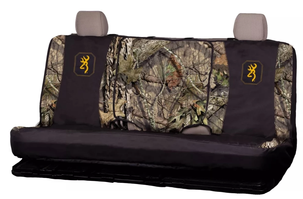 Upgrade the look of your truck or SUV’s bench seat and show your love for the outdoors and conservation with the Browning® Full-Size Camo Bench Seat Cover from Signature Automotive. This quality cover fits most full-size bench seats with or without headrests, delivering extra protection for the seat and a more comfortable seat for you. Cover is made of a heavy, water- and dirt-resistant polyester fabric. Sure to please the outdoorsmen, the cover features camo and black panels over the seating areas with a prominent Buckmark logo applique over the black. Allows convenient access to seat belts and center console.
