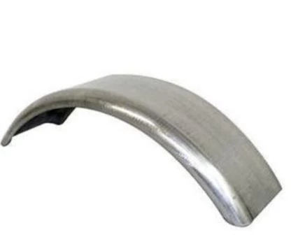 Heavy 16 gauge stamped steel trailer tire fender with a galvanized finish.