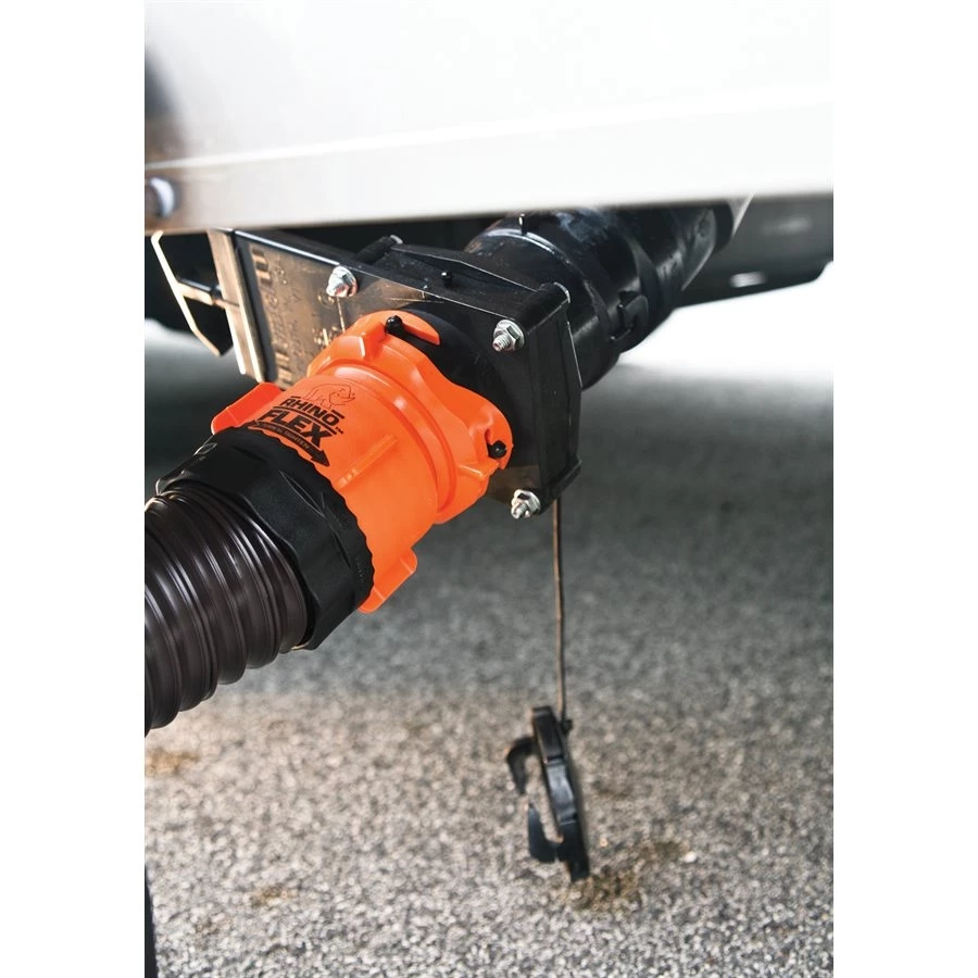All of the features that RVers are looking for in a complete kit. RhinoEXTREME hose will not dent or rust and will not crush if accidentally stepped on. Offers superior abrasion resistance for maximum protection against pinholes and leaks. The 15-ft kit includes a RhinoEXTREME hose with pre-attached Rhino bayonet and lug swivel fittings and 4-in-1 Elbow with adapter, plus four reusable locking rings and storage caps.