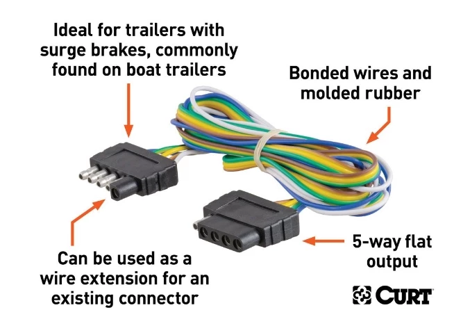 - 5-way flat connects tail lights, brake lights, turn signals and reverse lights