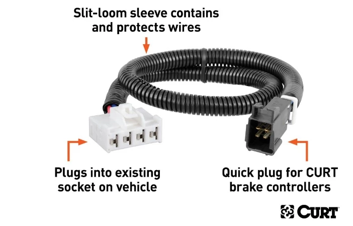 CURT quick plug brake controller harnesses make the installation of your brake controller literally a snap. They are designed to allow your brake controller to plug directly into your vehicle’s power system using an original equipment connector. They are equipped with two plugs — one that snaps into your vehicle’s original equipment socket and the other that connects to a CURT brake controller. CURT quick plug harnesses install with plug-and-play convenience to get you setup and on your way with time to spare. They include two feet of wire and a slit loom sleeve to keep wires well protected and contained.