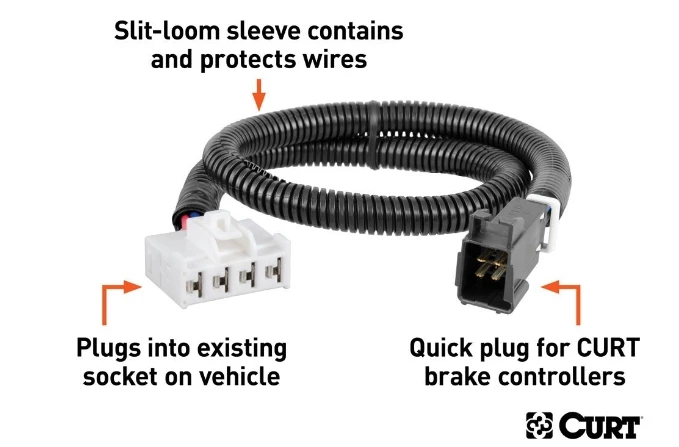 CURT quick plug brake controller harnesses make the installation of your brake controller literally a snap. They are designed to allow your brake controller to plug directly into your vehicle’s power system using an original equipment connector. They are equipped with two plugs — one that snaps into your vehicle’s original equipment socket and the other that connects to a CURT brake controller. CURT quick plug harnesses install with plug-and-play convenience to get you setup and on your way with time to spare. They include two feet of wire and a slit loom sleeve to keep wires well protected and contained.