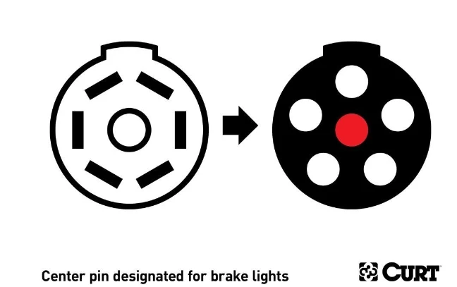 - Adapts a 7-way RV blade vehicle socket to fit 6-way round trailer plugs