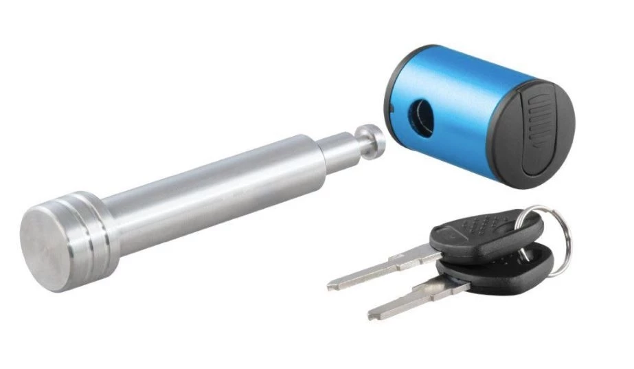 CURT hitch locks allow you to lock your ball mount into your trailer hitch, deterring theft and preventing anyone from detaching your trailer at the ball mount and towing away your property without your permission. This CURT hitch lock features a right angle, barbell design and comes with a 5/8″ pin diameter to fit a 2″ receiver tube size. CURT barbell hitch locks are comprised of a pin with two end caps and a round locking mechanism. They are key-operated and activate with a simple 1/4-turn. They also come with a watertight dust cap to keep out the elements and prevent corrosion.