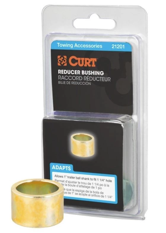 Installing a trailer ball with any wiggle room between the shank and ball mount hole is a recipe for disaster. It does not matter how much torque you apply to the trailer ball nut; if you have a trailer ball shank that is too small, it will eventually come loose in the ball mount platform and lead to trailer sway and even a breakaway. A CURT reducer bushing provides an effective filler for any gap that might surround your trailer ball shank. CURT reducer bushings come in three sizes to fit most standard trailer ball and ball mount sizes. This particular reducer bushing is designed to reduce a 1-1/4″ hole down to 1″. All CURT reducer bushings come with a yellow zinc finish to prevent rust and corrosion.