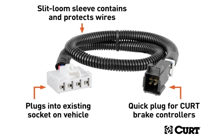 CURT quick plug brake controller harnesses make the installation of your brake controller literally a snap. They are designed to allow your brake controller to plug directly into your vehicle’s power system using an original equipment connector. They are equipped with two plugs — one that snaps into your vehicle’s original equipment socket and the other that connects to a CURT brake controller. CURT quick plug harnesses install with plug-and-play convenience to get you setup and on your way with time to spare. They include two feet of wire and a slit loom sleeve to keep wires well protected and contained.