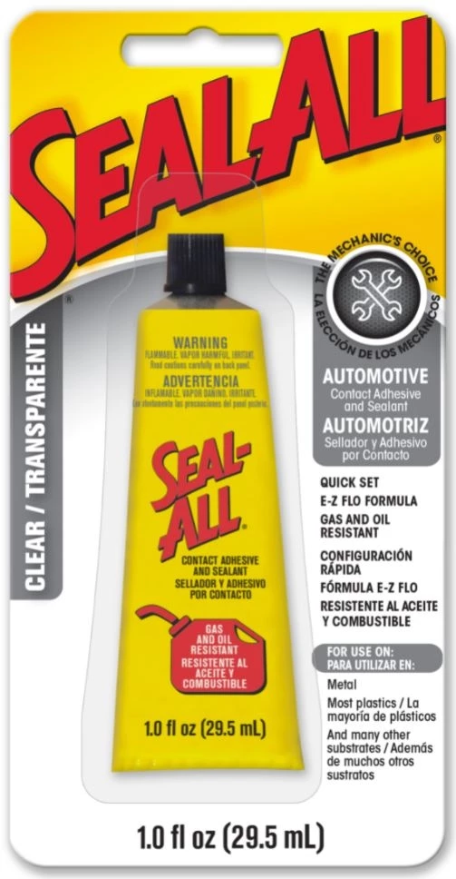 Seal-All is the adhesive mechanics and hobbyists trust for all their automotive and garage repairs. It adheres with superior strength to most substrates and resists gasoline, oil, paint thinner and most solvents.