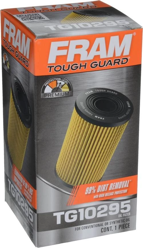 FRAM Tough Guardยฎ oil filters are designed for tough driving conditions, stop and go traffic, and hot and cold temperatures. The synthetic blend media provides 99% dirt holding capacity and engineered to perform with conventional and synthetic motor oil.