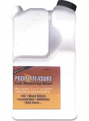 Patented 2-in-1 measuring and storage container. 16-oz. storage capacity. Accurately measures 1-6 ounces before pouring. Chemically resistant high density polyethylene.