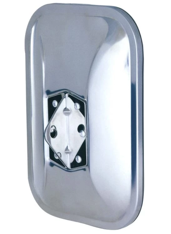 Stainless Steel 7 1/2″ x 10 1/2″ OE replacement mirror head for driver or passenger side. Mirror glass is sealed with a rubber gasket to help keep water out.