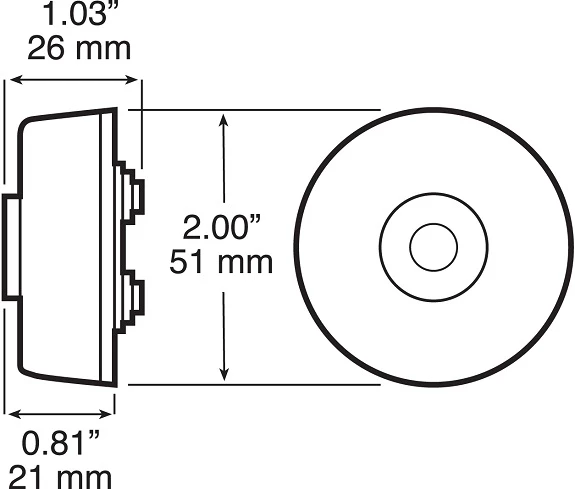 - 5-diode, 2″ round sealed LED combination light functions as both clearance and side marker light when mounted on a 45 degree angle.
