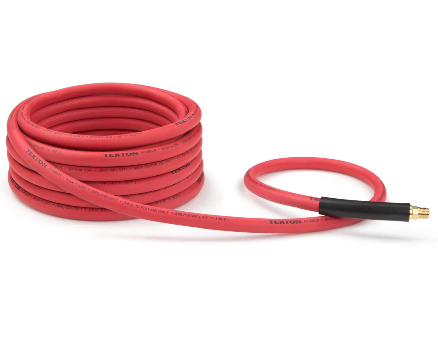 Delivering superior performance in extreme conditions, the TEKTON 25 ft. x 3/8 in. I.D. Rubber Air Hose stays soft and easy to work with in deep cold and won’t swell or bubble in blistering heat.