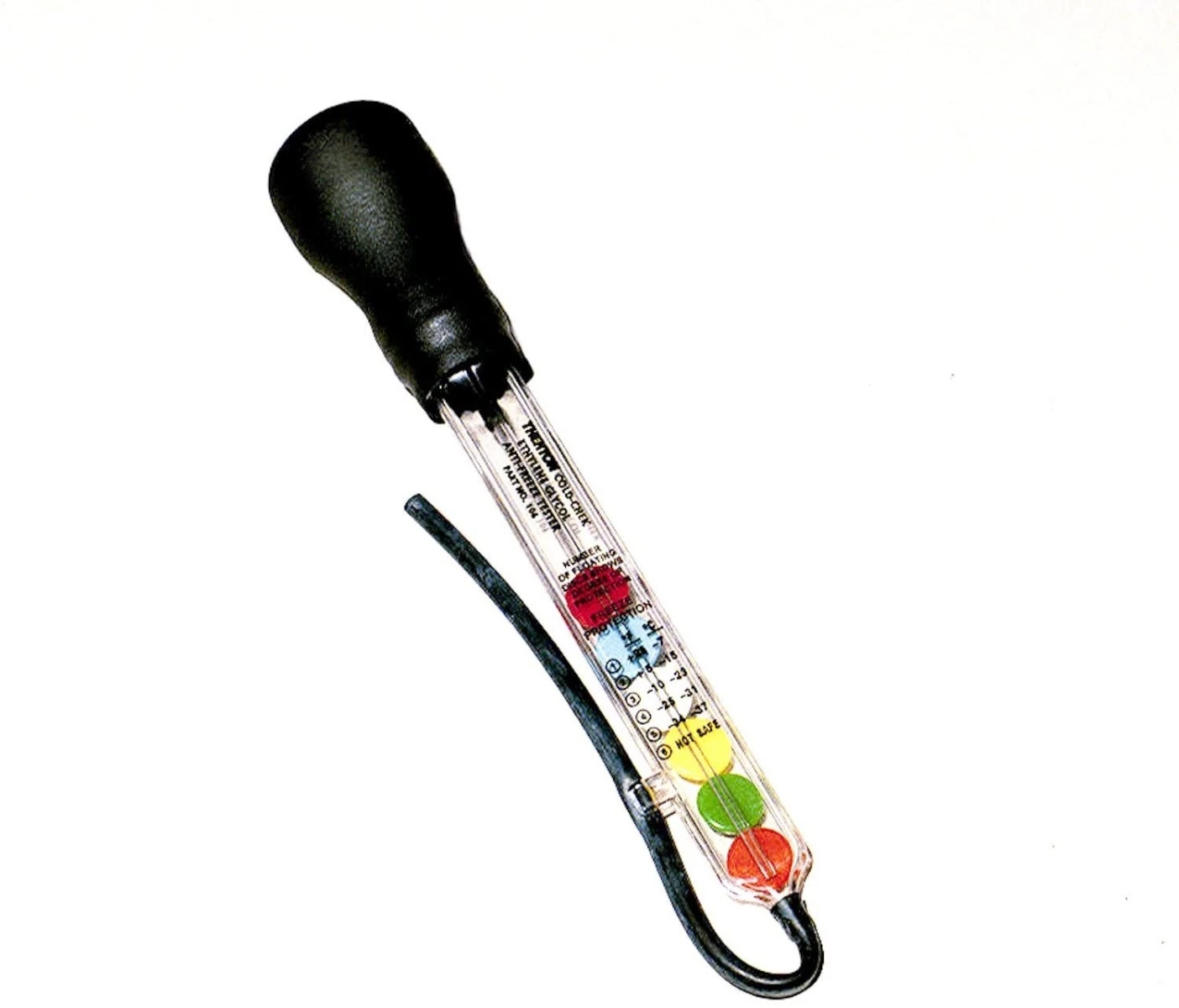 Cold-Chekยฎ Professional Anti-Freeze Tester. Large professional-size (16 1/4โ) tester is accurate at all temperatures. Tests coolant, hot or cold. Celsius and Fahrenheit scales. Special feature is the โ6th discโ which shows over protection and a loss of cooling efficiency. Beyond 70% antifreeze, cooling & corrosion effectiveness is reduced. Tests Dex-Cool, Prestone, Zerex, and long-life coolants.