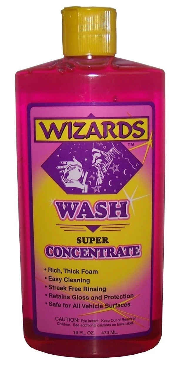 Wizards Wash is a superior ultra-concentrated, power-packed wash that delivers gentle, but thorough cleaning of all types of surfaces: car, trucks, motorcycles, RVs, ATVs, boats, aircraft and more. Its thick, foaming action lifts and safely floats away dirt and grime without removing polishes or waxes. Streak-free rinsing assure quick drying and maximum shine. Wizards Wash has a neutral pH and contains no acids, abrasives, silicone, waxes, or damaging sodium chloride.